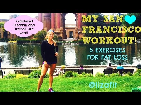 Quick HIIT workout for fat loss that can be done anywhere- anytime. Filmed on a trip in San Francisco. A good workout can be done anywhere with minimal equipment. - Jumping Jacks -Updowns -Ski Jumps - Squat Jumps -Split Squat Jumps 20 Repetitions of each exercise! LizaFit.com